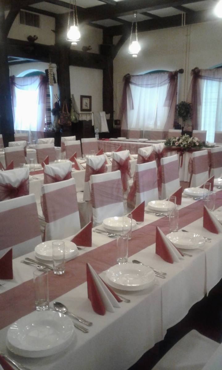 Nagy tapasztalatot szereztünk esküvők és egyéb családi rendezvények lebonyolításában. Éttermünk nagyterme 100 fős, melyet egybe tudunk nyitni 45 fős különtermünkkel, így akár 150 főt befogadó rendezvényt is vállalunk.